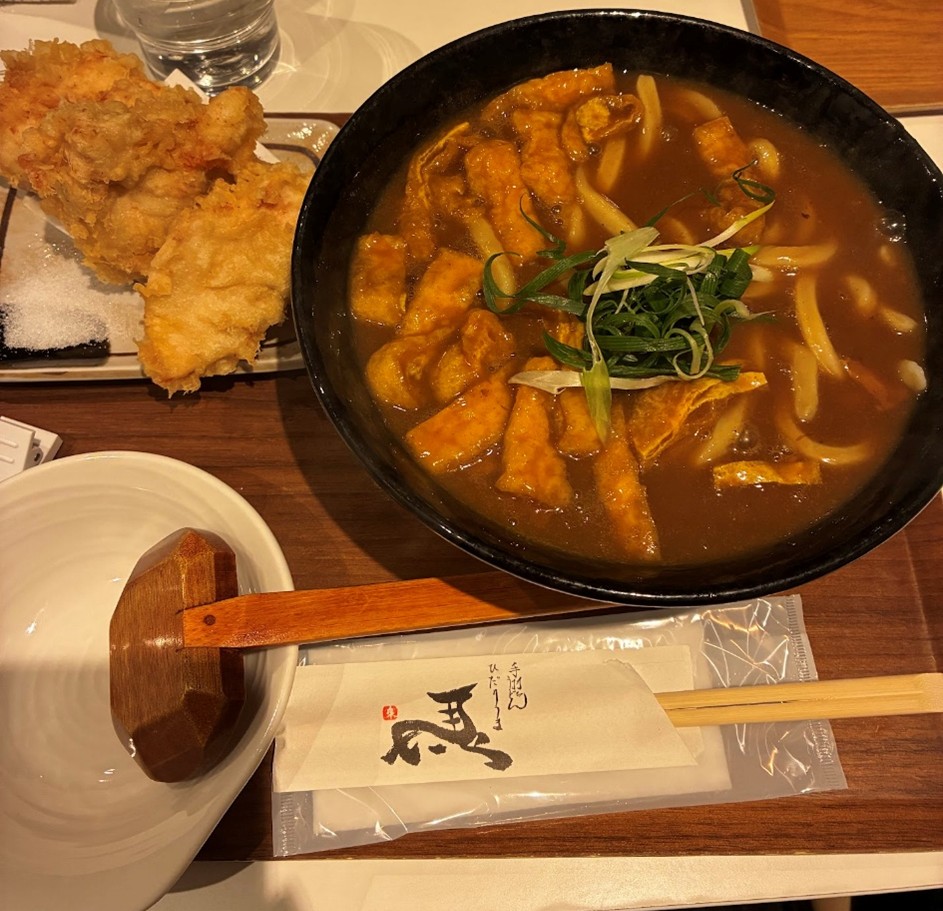 お昼には近くのおいしいうどん屋に行きました!とり天がジューシーでめちゃくちゃ美味かったです.