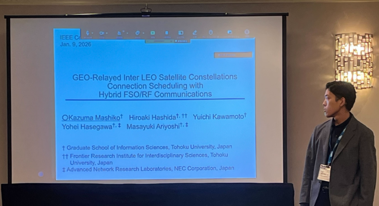 Hinonishi (M1) made a presentation entitled “Snell-Guided Coverage Estimation Model for Optimal Static Metasurface Design” at Technical Committee on Radio Communication Systems, that was held in Katsushika, Tokyo, Japan in Mar. 2026.